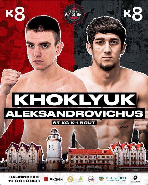 17 октября во дворце спорта Янтарный ,в рамках турнира "King of Warriors" состоится профессиональный бой по кикбоксингу К1 между Артемом Хохлюком и Рустамом Александровичусом!им предстоит три раунда по три минуты реванш!
